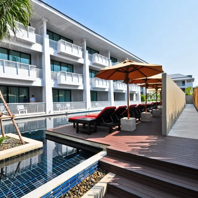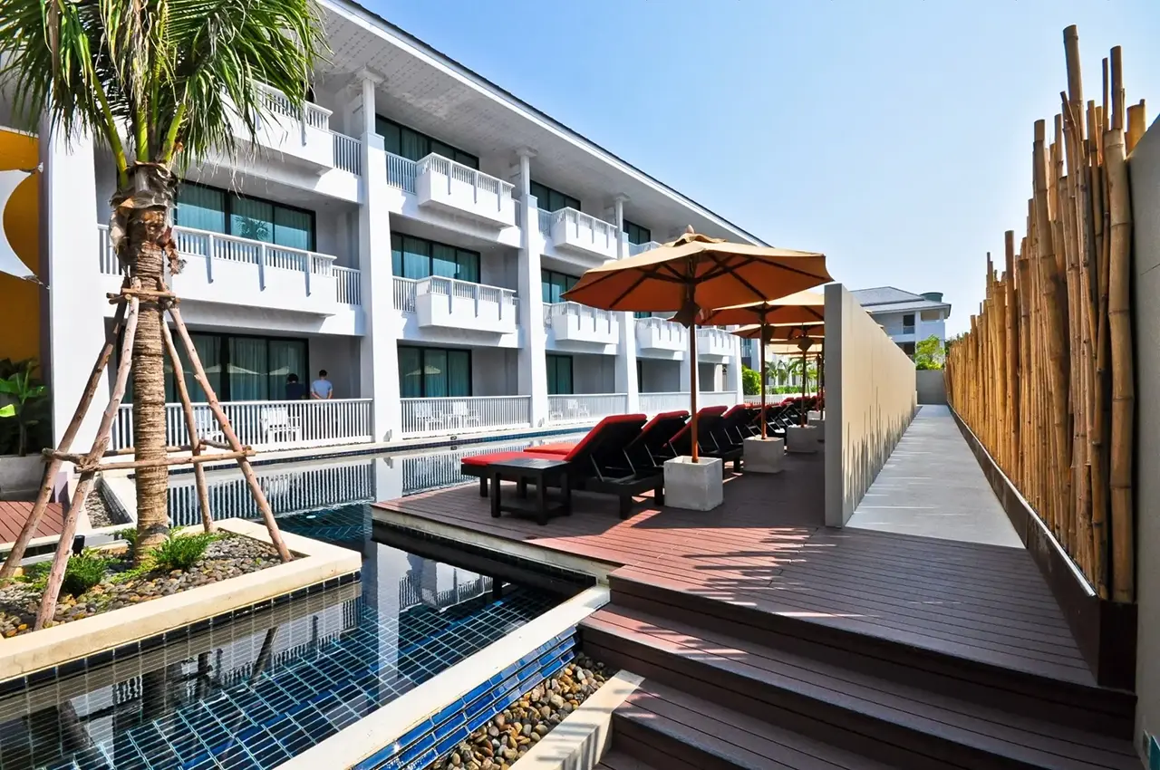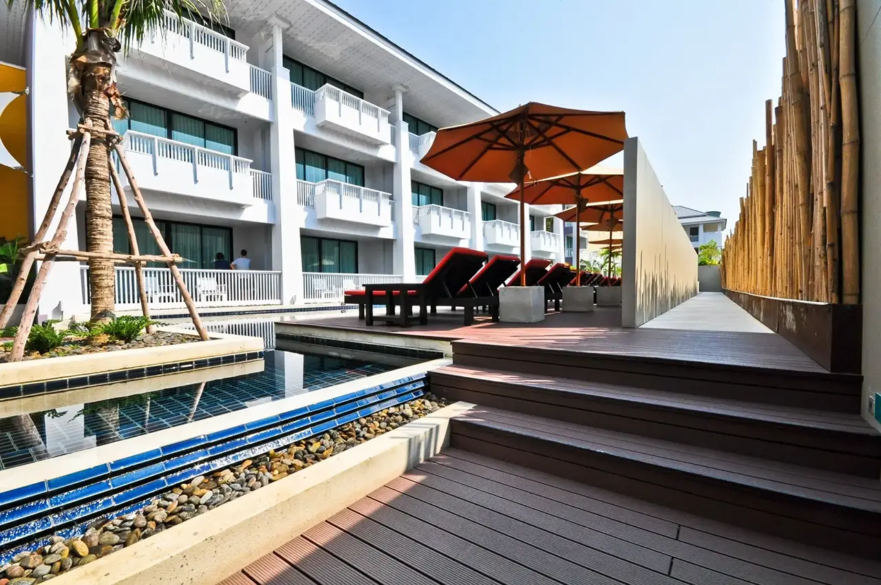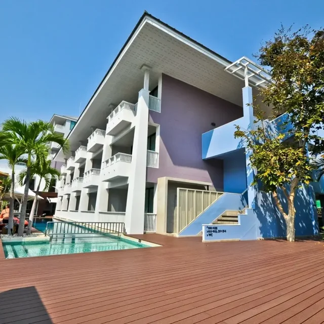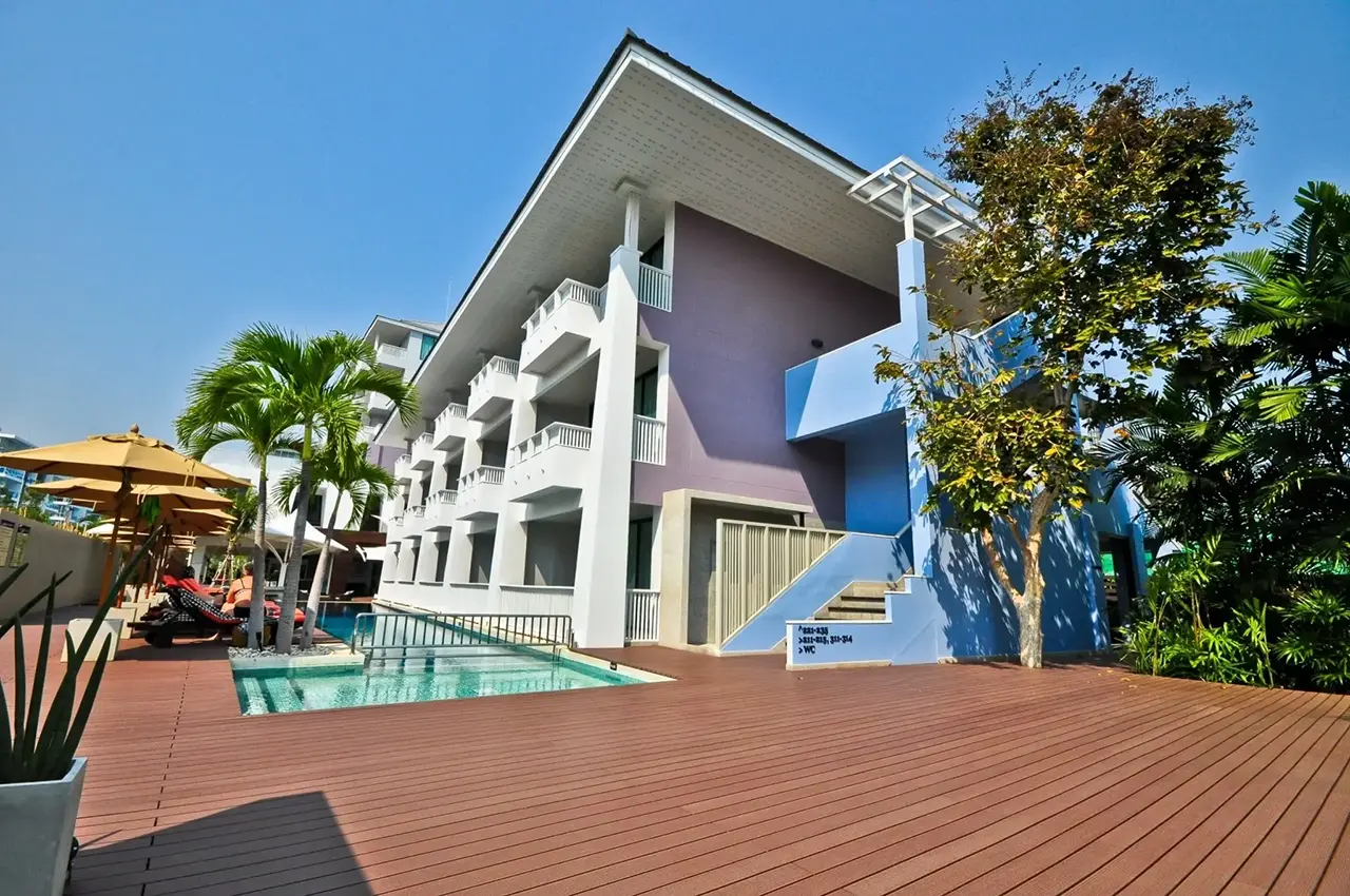 ที่พักติดทะเลที่มีออกแบบสไตล์ Modern Retro ให้บรรยากาศร่มรื่น เหมาะแก่การมาพักผ่อน พักจากความวุ่นวายในเมืองไปกับบรรยากาศที่โปร่งสบาย และการตกแต่งผสมกับศิลปะอย่างลงตัว ซึ่งทางรีสอร์ทเลือกใช้วัสดุไม้สังเคราะห์ของ